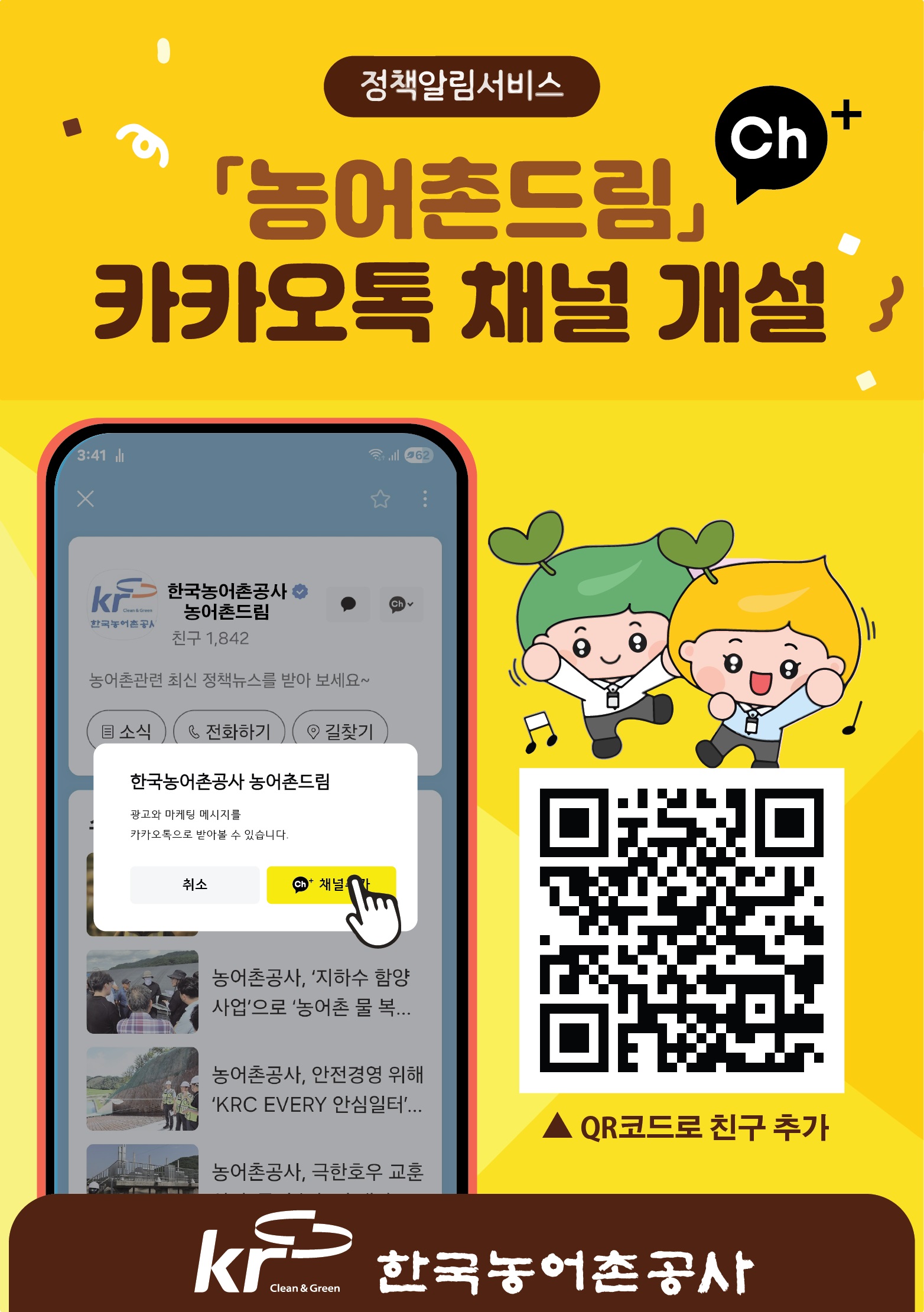 한국농어촌공사 정책알림서비「농어촌드림」 카카오톡 채널 가입 안내